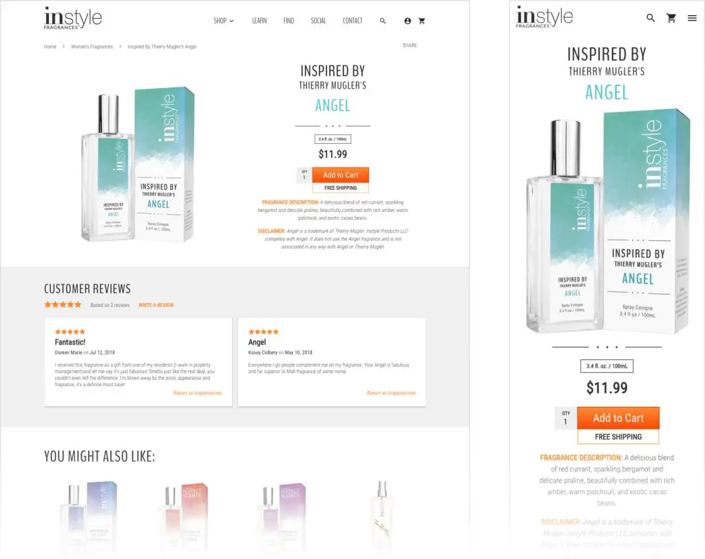 I designed an ecommerce website for Instyle’s fragrances and accessories. I also photographed their fragrances and retouched them for use on the website.