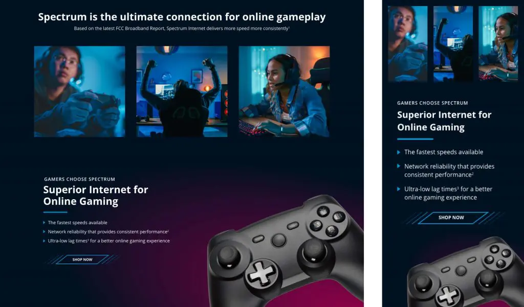 Spectrum is one of the fastest internet providers in the U.S. I designed the landing page to promote Spectrum Internet, which was part of a campaign to bring more awareness and information about Spectrum’s fastest internet speeds.
