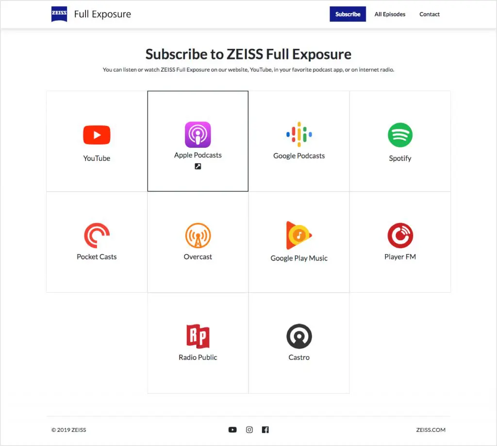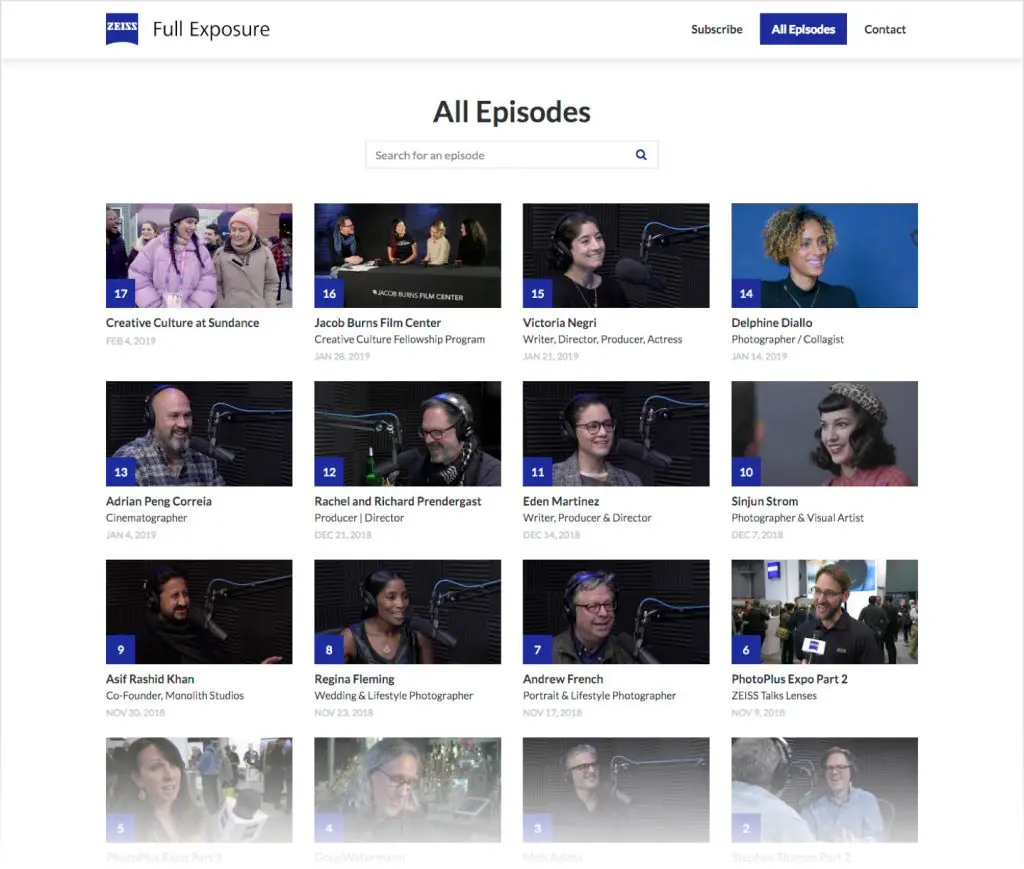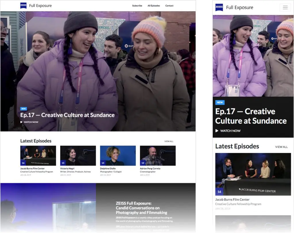 I designed the ZEISS Full Exposure Podcast website. The goal was to bring a similar YouTube like experience along with having different ways to subscribe to the show.